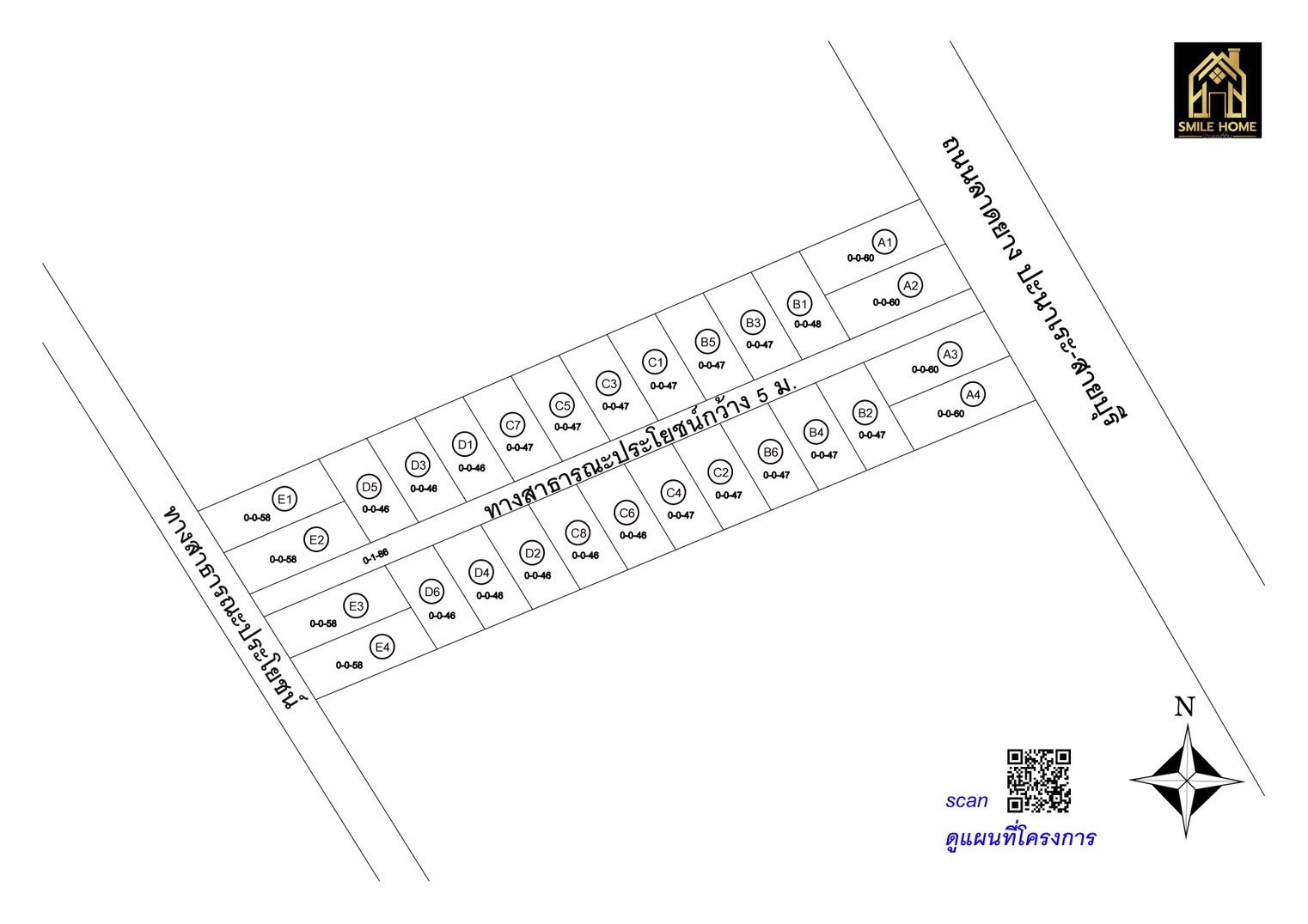 คมนาคมสะดวก: ที่ดินติดถนนลาดยางใหญ่ และถนนโครงการกว้าง 5 เมตร